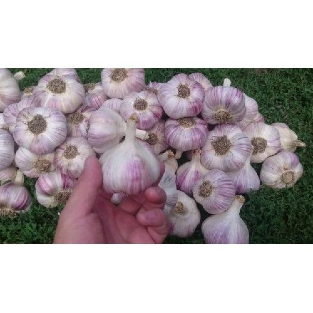 Зробити замовленняЧасник озимий Любаша Україна на вагу - Часник Любаша - це озимий сорт, середньостиглий, відноситься до стрілуючим різновидів. Середній термін дозрівання становить близько 87-98 днів. Володіє пікантним, гострим, характерно часниковим смаком і стійким чудовим ароматом. У дорослому стані рослина досягає у висоту 120-150 см. Головка часнику округло-плоска. Складається, в основному, з 4-7 зубчиків простої структури по 10-20 г кожен. Загальна вага цибулини може досягати до 120 м Лушпиння біла, іноді злегка рожева, з прожилками фіолетового кольору. Листя темно-смарагдового кольору, щільні і довгі. В ширину вони близько 2-2,5 см, а в довжину можуть досягати до 45-50 см. Листя цього сорту стоячі, розташовуються щільно, покриті легким восковим нальотом.