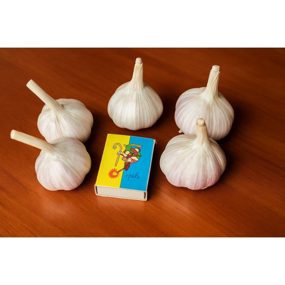 Зробити замовленняЧасник озимий Любаша Україна на вагу - Часник Любаша - це озимий сорт, середньостиглий, відноситься до стрілуючим різновидів. Середній термін дозрівання становить близько 87-98 днів. Володіє пікантним, гострим, характерно часниковим смаком і стійким чудовим ароматом. У дорослому стані рослина досягає у висоту 120-150 см. Головка часнику округло-плоска. Складається, в основному, з 4-7 зубчиків простої структури по 10-20 г кожен. Загальна вага цибулини може досягати до 120 м Лушпиння біла, іноді злегка рожева, з прожилками фіолетового кольору. Листя темно-смарагдового кольору, щільні і довгі. В ширину вони близько 2-2,5 см, а в довжину можуть досягати до 45-50 см. Листя цього сорту стоячі, розташовуються щільно, покриті легким восковим нальотом.
