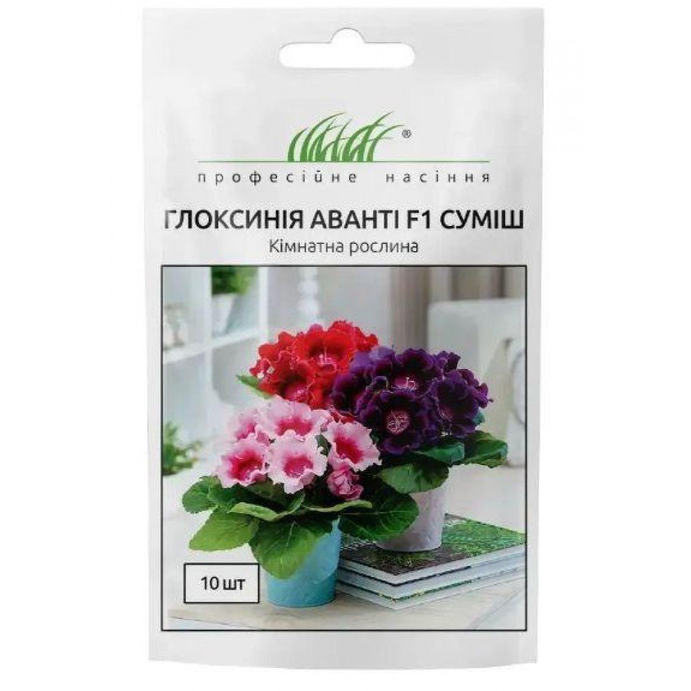Глоксинія Аванті F1 (Sinningia speciosa Avanti F1). Неперевершена, одна з найбільш ранньоквітучих серій глоксинії, з широким спектром яскравих, оригінальних забарвлень. Кущ компактний, висотою 20-25 см. Листя невеликого розміру. На дорослій рослині утворюється 10-15 великих квітів. Теплолюбива культура, оптимальна температура вирощування +20-25 ⁰С, в зимовий період +10-14 ⁰С. Освітлення яскраве, розсіяне. У період активного росту та цвітіння потребує рясного поливу, підживлення, вологого повітря. Насіння висівають у лютому-березні поверхнево. Посадкову ємність накривають плівкою або склом та ставлять у тепле, світле місце. Провітрюють, субстрат підтримують у вологому стані. Оптимальна температура +20-22 ⁰С. Після появи сходів скло знімають. У фазі 2-3 справжніх листків рослини розсаджують в окремі горщики. Чудово виглядає в кашпо та контейнерах у літній період.