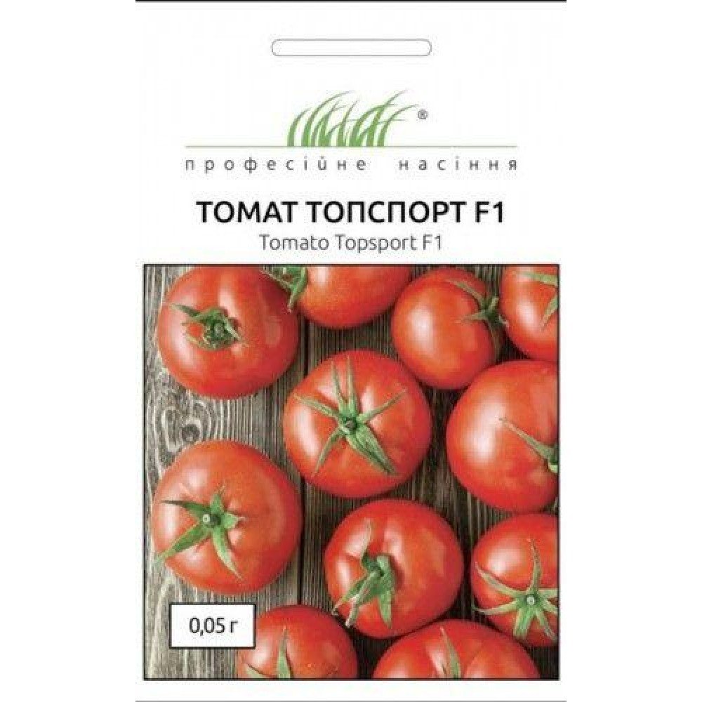 Томат Топспорт F1 формує компактну детермінантну рослину висотою 0,5-0,6 м. В кожному суцвітті завʼязується 8-10 якісних плодів. Плоди червоного забарвлення, округлої форми, щільні, масою 60-80 г. Томати мають високі смакові якості, прекрасну консистенцію і привабливий товарний вигляд Плоди рекомендовані для цільноплідного консервування, соління та приготування томатної пасти.