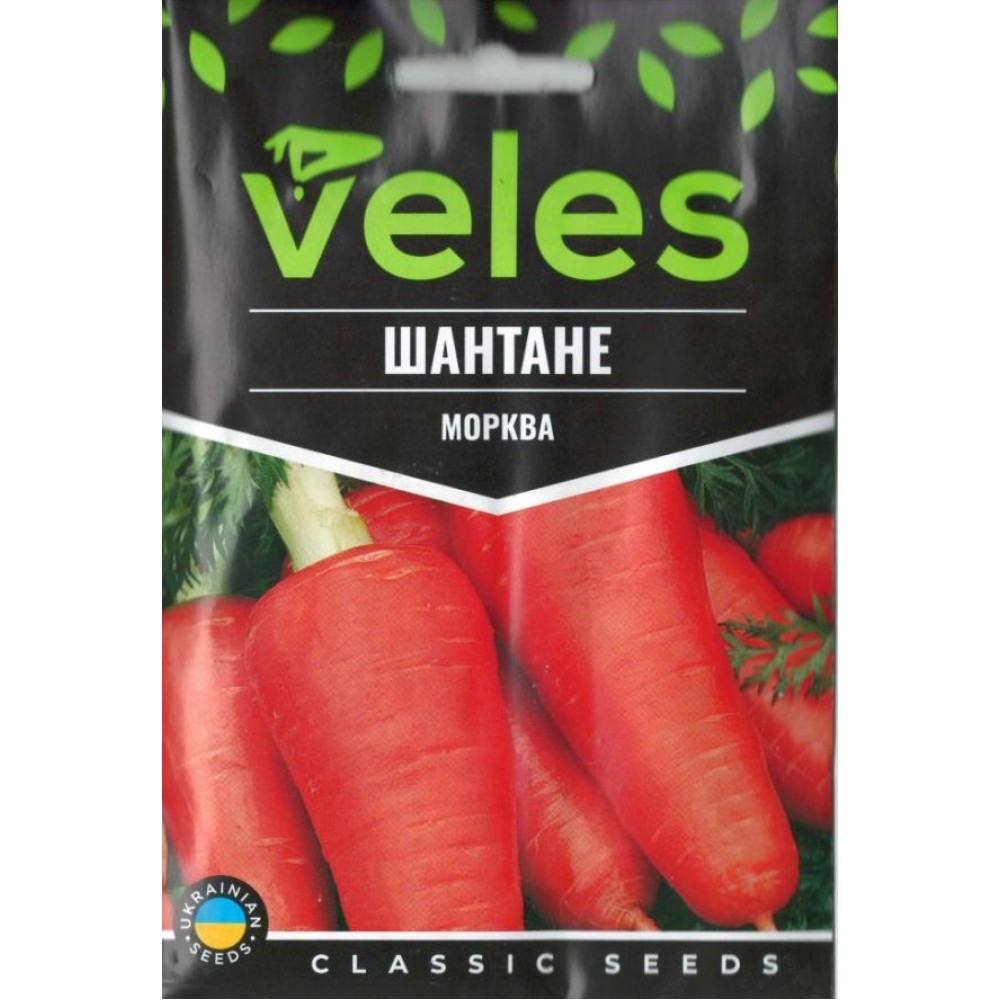 Популярний середньо-пізній сорт моркви. (Термін дозрівання 110-120 днів). Коренеплоди гладкі конічні, довжиною 15-17 см. Сорт Шантане має дуже насичений помаранчевий колір і помірну стійкість до стрілкування. Призначений для вживання в свіжому вигляді, переробки і тривалого зберігання. Прекрасно зберігається близько 9 місяців і при цьому зберігає гарний зовнішній вигляд. Довжина коренеплоду - 15-17 см.