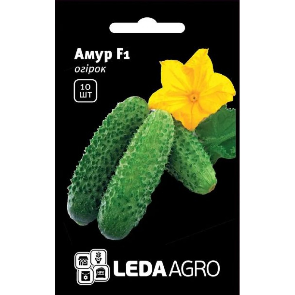 Амур F1 - ультраранній самозапильний гібрид огірка. Рослина сильна, формує 6-8 плодів у вузлі. Показує стабільний, високий і якісний урожай впродовж всього періоду вирощування. Плоди темно-зелені, однорідні, шиповані, циліндричної форми, з маленькою насіннєвою камерою, тонкошкірі, без гіркоти, з прекрасним смаком. Добре транспортуються. Стійкий до високих температур, повітряної посухи, борошнистої роси, пероноспорозу. Середня врожайність - 25-28 кг / м². Цей показник підвищується при правильному забезпеченні мінеральними добривами і достатньому поливі, врожайність становить 35-40 кг / м². Висівати після загрози заморозків, коли грунт прогріється до 10-12 ° C, на глибину 3-4 см!