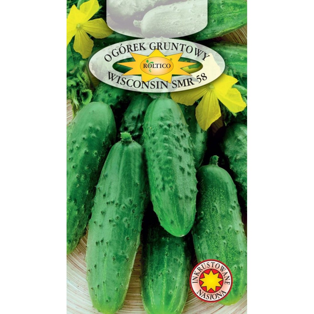 Cорт Американської реліквії! Виведений в Університеті штату Вісконсін в 1959 року - не гібрид. Дозріває через 58 днів у відкритому грунті. Wisconsin SMR 58 - огірок корнішон з відкритим запиленням. Сорт дає маси дрібних, хрустких, солодких огірочків 10 - 12 см завдовжки протягом усього вегетаційного сезону. Один з кращих сортів для засолювання огірків. Стійкий до парші та вірусу тютюнової мозаїки. Один з найбільш високоврожайних сортів протягом всього тривалого сезон збору врожаю. Розмістіть лози огірка так, щоб вони росли вертикально. Таким чином, плоди дозрівають красиво і прямо, і рівномірно пофарбовані з усіх боків.
